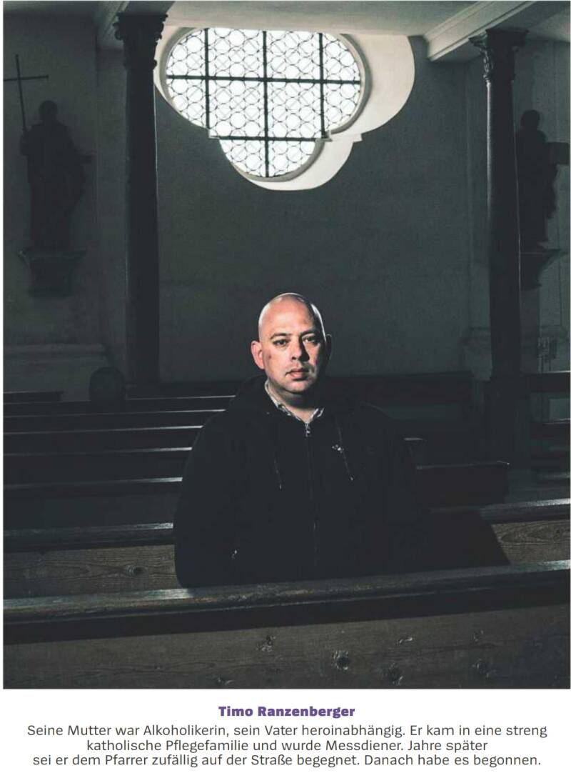 Der Sozialdienst katholischer Frauen erhielt nach dem Tod seiner Großmutter die gesetzliche Vormundschaft, er kam zu einer streng katholischen Pflegefamilie in einer Gemeinde des Bistums Trier, später in eine Wohngemeinschaft. Mit 11 wurde er Messdiener. Ende der Neunzigerjahre, Ranzenberger war 15 Jahre alt, begegnete er dem Pfarrer der Gemeinde auf der Straße. Der habe ihn gefragt, ob er nicht Lust habe, ein Wochenende bei ihm im Pfarrhaus zu verbringen. Es sei ihm wie das Paradies erschienen, sagt Ranzenberger: Sechs oder sieben Jungs hätten draußen am Gartentisch gesessen und so viel Bier getrunken, wie sie konnten, besorgt hatte es der Pfarrer selbst.